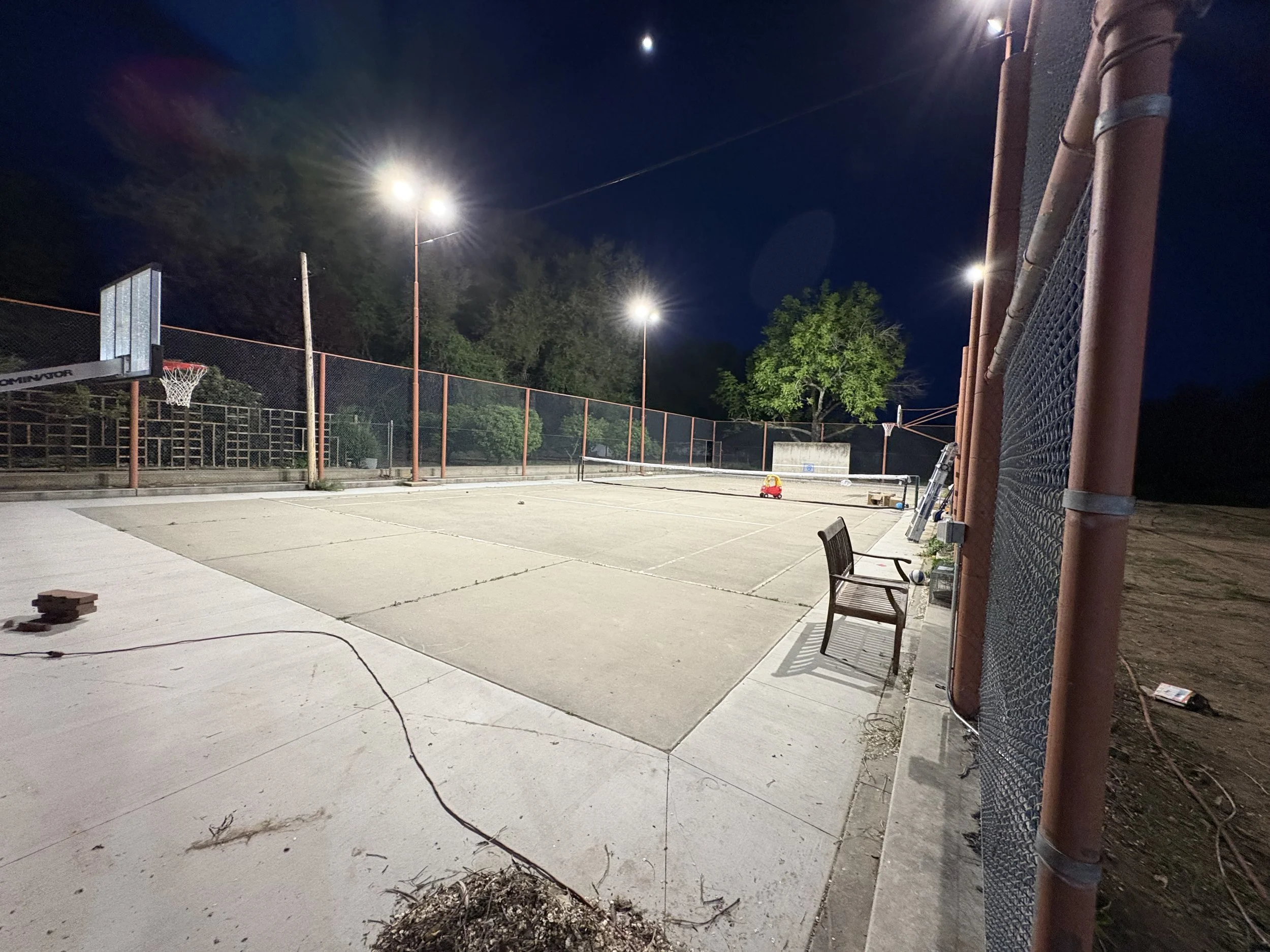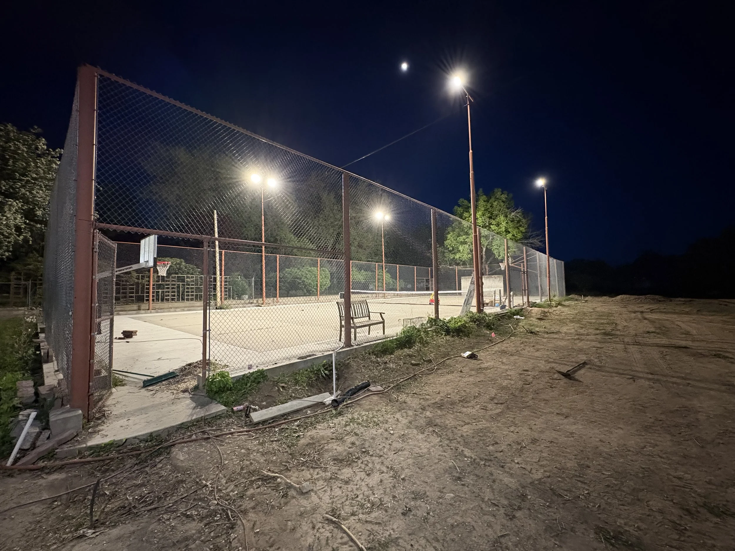 Replaced aging tennis court lights with updated LED fixtures, upgraded wiring and controls. Ensured system meets performance and efficiency standards